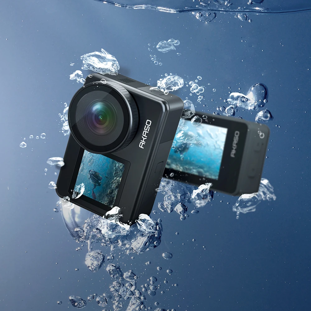 AKASO Brave 7 underwater camera is waterproof up to 33FT/10M without a case for up to 30 minutes. You can record in any weather thanks to its IPX8 water-resistant body. Bring this waterproof action camera on your next adventure and share your experience effortlessly.