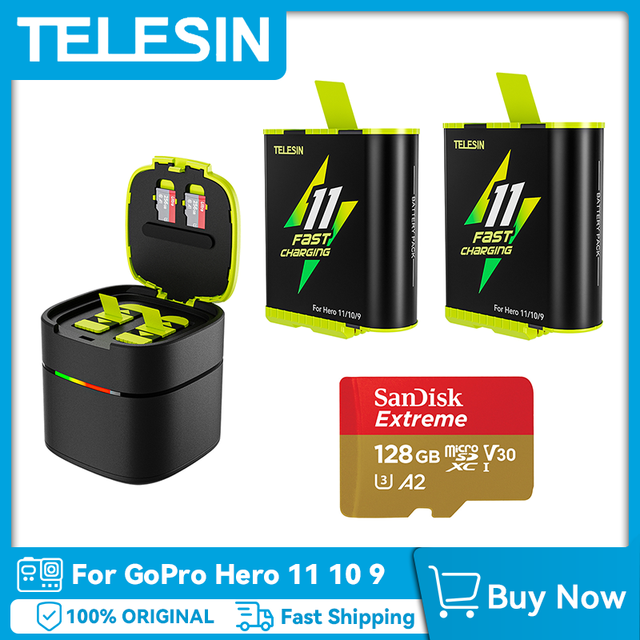 TELESIN Fast Charging Battery For GoPro Hero 11 10 9 1750 mAh Battery 2 Ways 2A Fast Charger Box