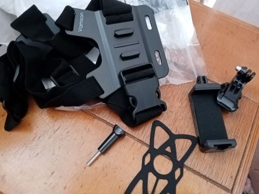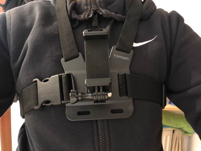 According to the picture, the mobile phone can install on the chest strap, which can use for horizontal and vertical shooting.